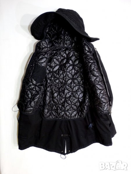 Дамска парка от две части т.е. могат да се носят заедно за студено време и поотделно за хладно/топло време. Страхотна качулка, която се моделира по ваше желание, 4 външни джоба и опция за стягане в талията, стяга се, и качулката. Леки следи от употреба, наситен черен цвят.