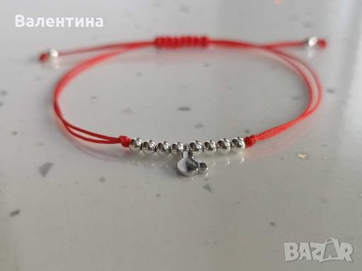 Ръчно изработени гривни с 925 сребърни топчета/мъниста/ елементи, 925 сребърен медальон/висулка Мики Маус на червен конец /корда
