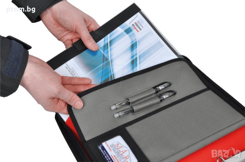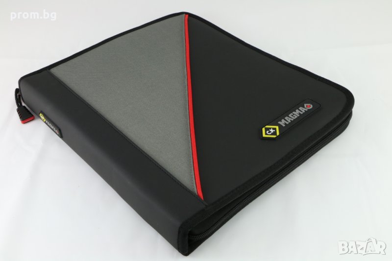 работна папка тип органайзер CK Magma. Внос от Германия. Включва: джобове за документи А4, джоб за визитки, двоен държач за химикали, затваряне с цип. Размери: 340x300x40 мм. Тегло: 950гр. Вкл. хартиен пад с 30 листа. Материал: здрав полиестер.