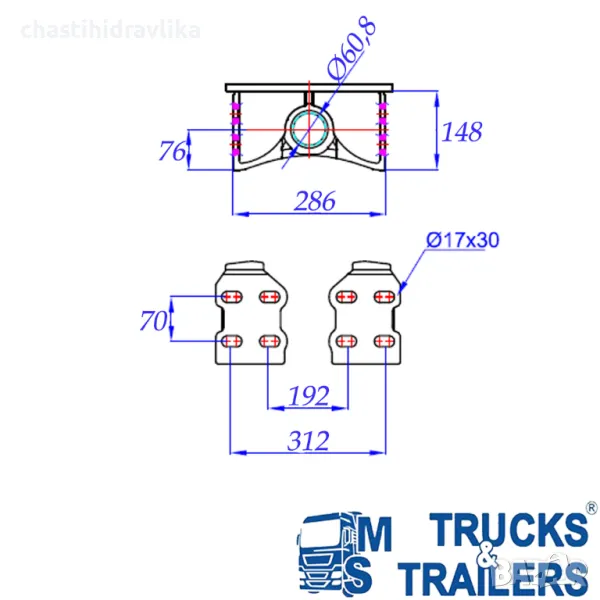 Долна конзола за монтаж на хидравличен цилиндър HIDROMAS от серия C и серия H