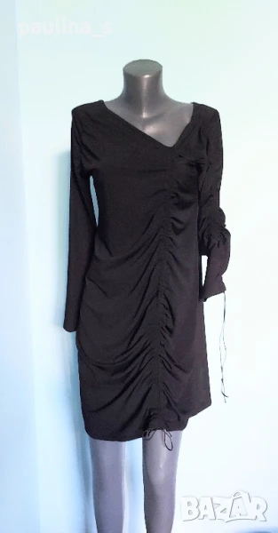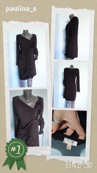 2️⃣. Колаж / L / 2XL - "Estel collection". Цената е крайна 39,99лв / 20 евро. Нова, асиметрична, еластична рокля от ликра. Отпред и на ръкава се скъсява индивидуално с копринени шнурове. Купена е от магазин на Ребека Блу. Подходяща е за повод или подарък. Без дефекти, чисто нова.