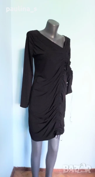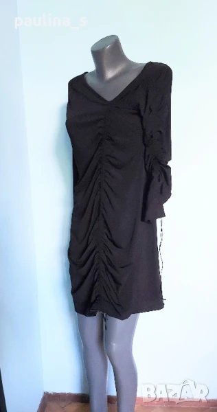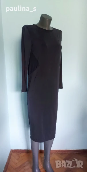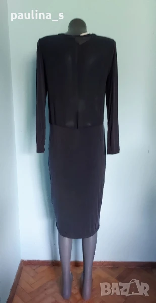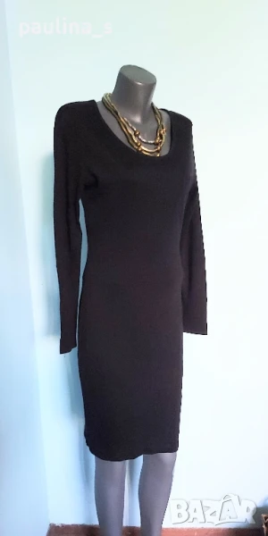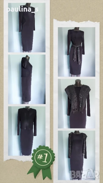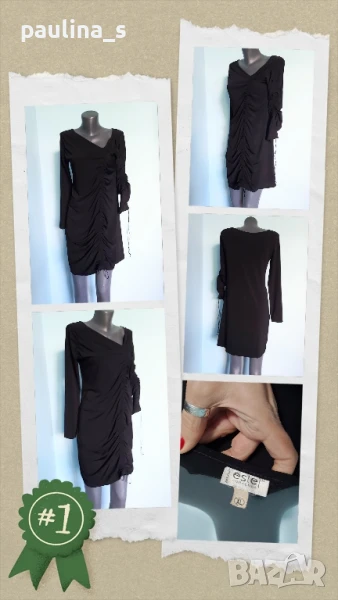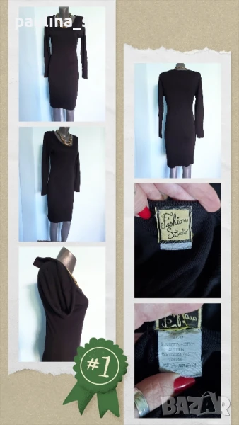 3️⃣. Колаж / M / 2XL - "Fashion studio". Цената е крайна 29,99лв / 15 евро. Малка Черна Рокля с дълъг ръкав, дреха must have! Всяка уважаваща себе си жена, трябва да има в гардероба си, в случай, че трябва да излезе спешно и да изглежда добре, когато няма нищо друго под ръка. Дрехата е хипоалергична с много качествена изработка. Материята е рипсено трико, еластична и покрива няколко размера до 2XL. Съдържа вискоза и памук, немачкаема и пада тежко по тялото, без да очертава излишните килограми. Купувана е в Цюрих за повод и е доста скъпа. Не е чисто нова, но е без дефекти. Колието не влиза в цената и се продава също за 10 евро, при желание ще направя отделна обява за него.