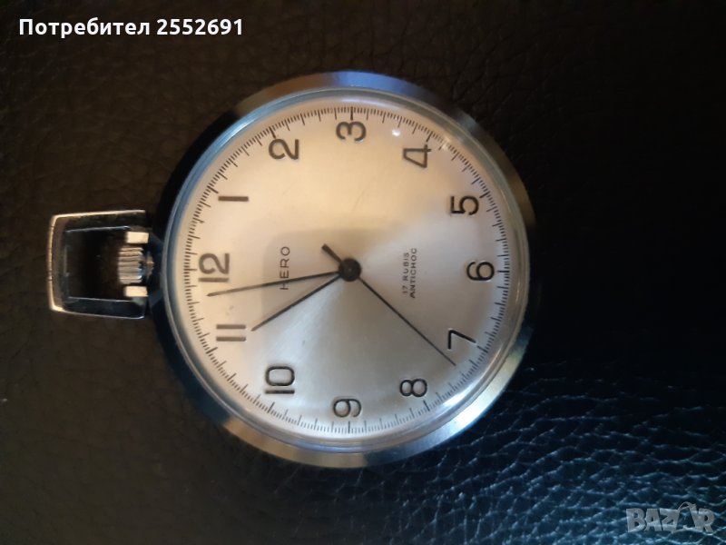 Механичен, работещ, добре запазен джобен часовник "HERO" 17 RUBIS ANTICHOC