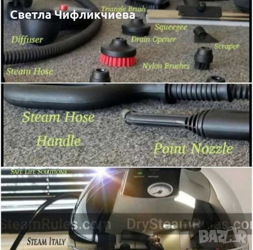 почистване се отстраняват сто процента от бактериите в дома. Използвайки аксесоарите перфектно се изчистват плочките, готварската печка и абсорбатора в