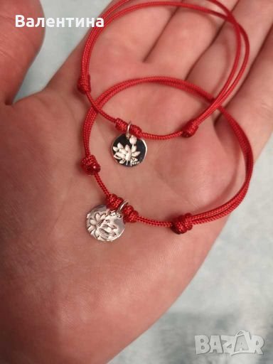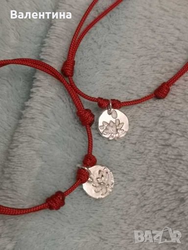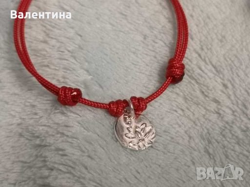 Ръчно изработени гривни против уроки, червен конец / корда и 925 сребърен елемент/висулка/медальон Лотус