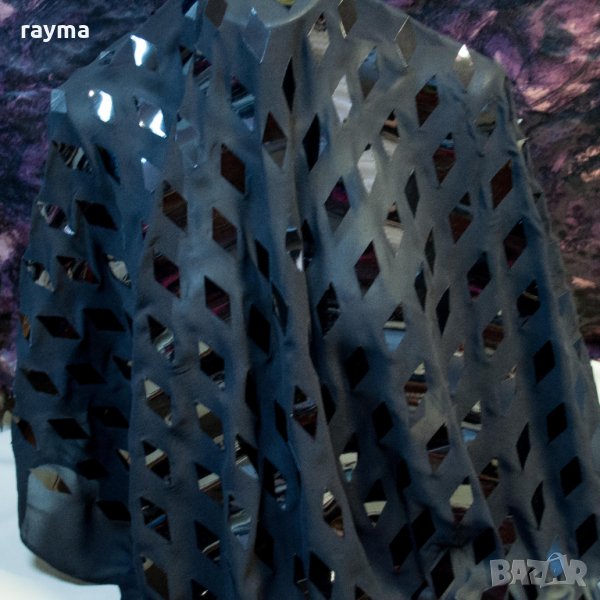 Италиански луксозен плат - копринен черен шифон с паети ромбове → Обява 28190042