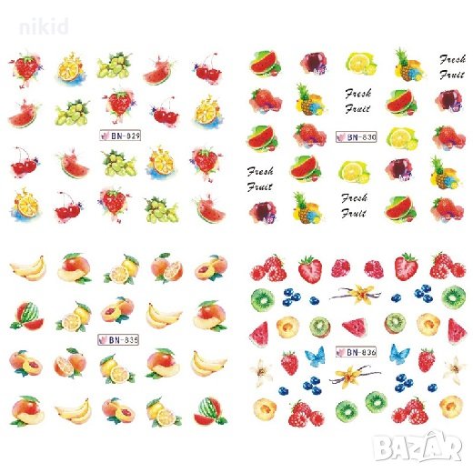 лист 12 в 1 вида плодове слайдер татос ваденки водни стикери за нокти маникюр → Обява 28190804