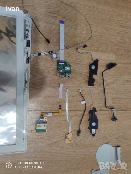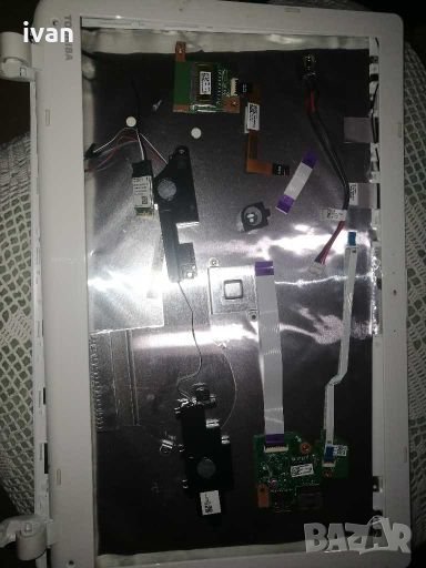 зарядното , хард диска, пластмасите ,батерията , охлаждането, рама , Дънната платка , старт бутона платката,CD - то , колонките