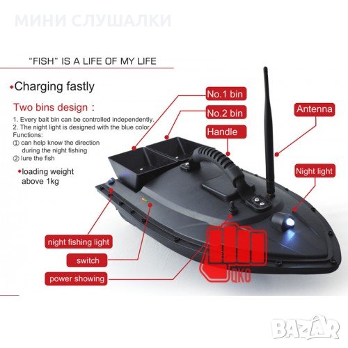 рибарска лодка, лодка с дистанционно, за риболов, разпъване на въдицата, RC, шаранджийска лодка, радио управляема лодка за захранка.