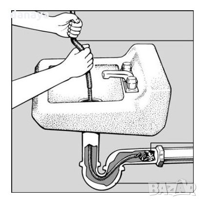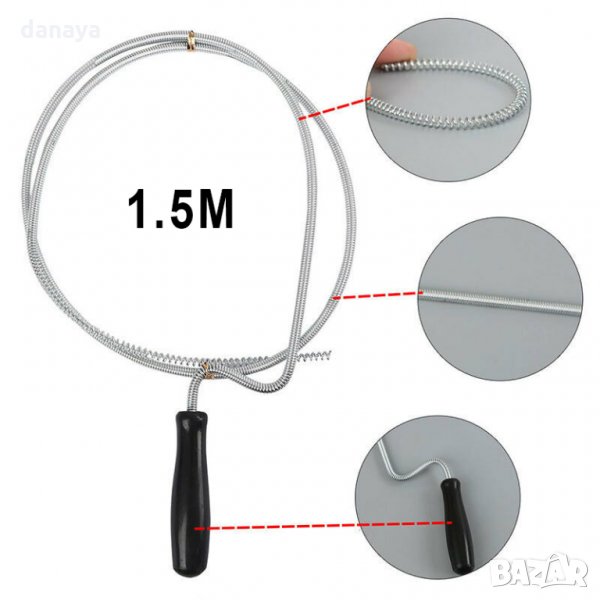 Тел за отпушване на канали и тръби. Стоманена пружина, жило, броня за отпушване на тръби и канали. Жилото минава през чупки до 90 °. Пластмасова дръжка във вид на манивела за по лесна и по добра работа при отпушване.