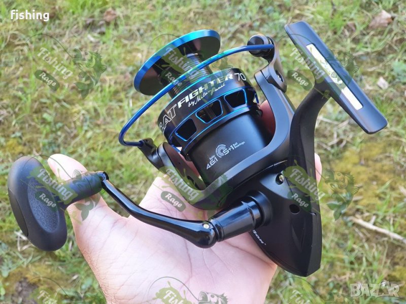 Cat Fighter 70 е по-големият и много по-голям брат на макарите Metalim Neo 30/40 и ние възнамерявахме да ловуваме големи и големи сомове, Бели Риби, щуки и други големи хищници. Той е създаден в съответствие с изискванията и инструкциите на Милан Паник, нашият тестов рибар и добре познат водач от Ебро, и успешно премина и премина множество тестове и схватки с голям сом на тази известна река. Cat Fighter 70 има здрав и здрав метален (алуминиев) корпус, мощна трансмисия 4.6: 1 и лост, който се плъзга в задвижващия вал. Това е изключително силна и здрава макра (но не твърде голяма), идеална за работа с най-големите гребени, тежки джиги, дълбоководни воблери и други подобни, или просто за борба с големи сомове. Може да се използва и за различни дълбоководни риболов.