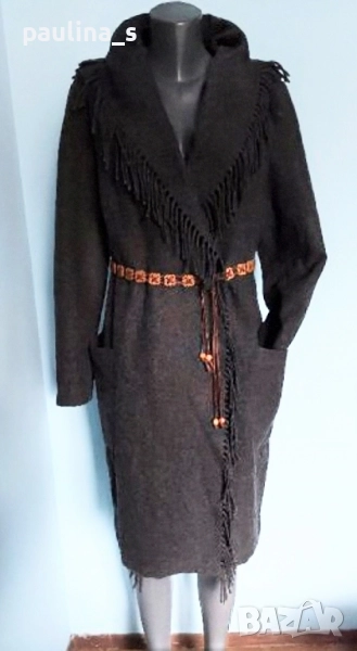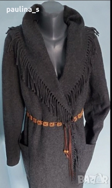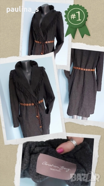 2️⃣. Колаж / M / 2XL / Вълнено палто с прихлупване и ресни "Cristian Berg". Цената е крайна 49,99лв / 25 евро. Превъзходно палто с прихлупване и богата като шлейф яка, с високо съдържание на вълна. Моделът е прав, с открити външни джобове ресни за декорация и разкош. Има хастар на ръкавите за лесно обличане. Поради моделът, може да се носи от няколко размера, посочени са, една бройка е, без дефекти (скъсно или изпрошнати тегели). Коланът се оценява отделно - цена 14,99лв / 7,5 евро, предпочитам да не се делят!