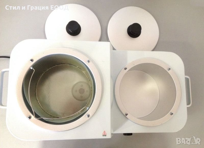 Двоен съд с цедка за прочистване на восъка.