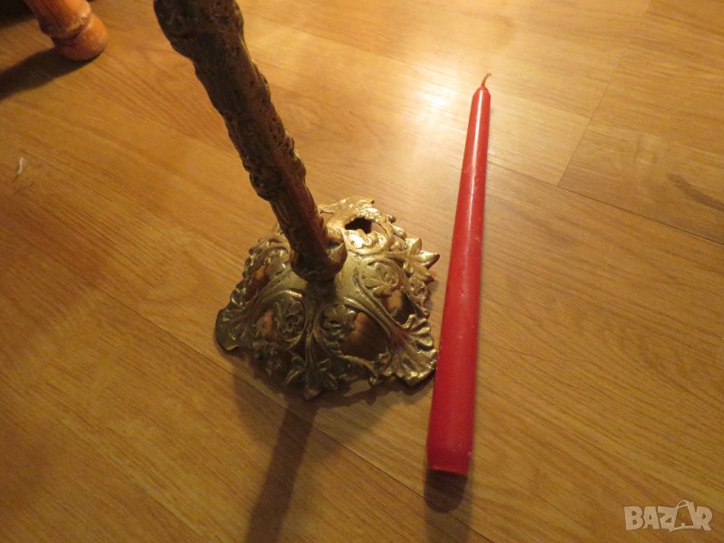 Стар голям и солиден бронзов свещник с свещ - 32 см. - старинна красота от метал за вашия дом офис или колекция .