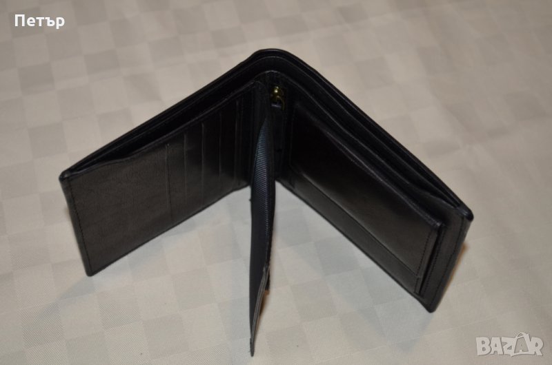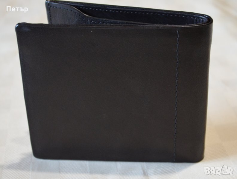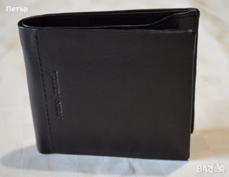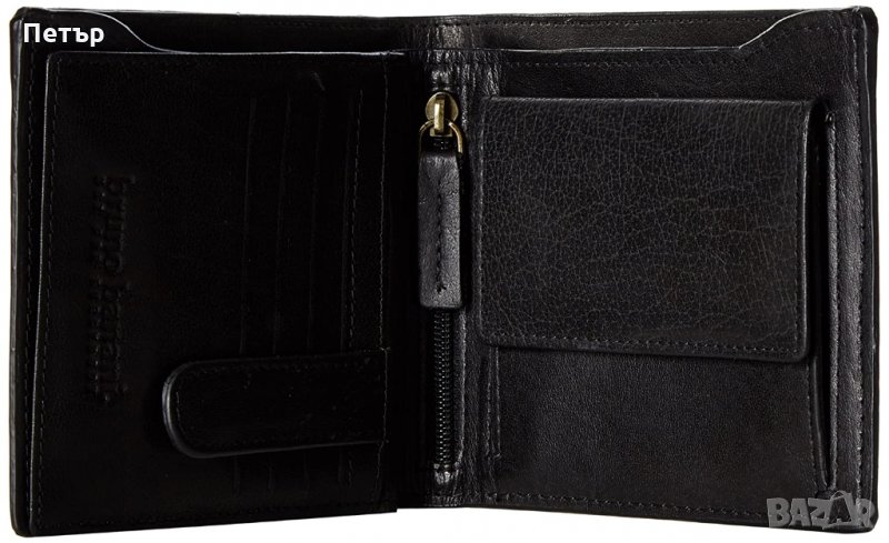 Портфейла е чисто нов и в кутията си. На Германската фирма Bruno Banani е , а номера на модела е W320/2366 и е от колекцията Arizona. Хоризонтален тип и е изработен от черна естествена кожа с боядисани в черно ръбове и подплата от черен полиестер от вътрешната страна. Портфейла разполага общо с множество от отделения за карти: