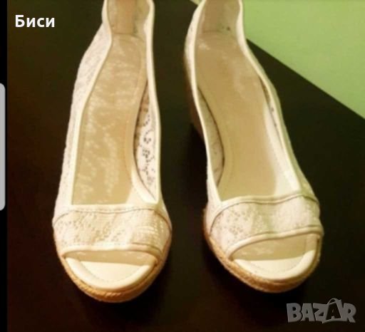 Nine West-страхотни, леки, нови,дантелени обувки от напълно естествени материали,неносени,отговарят на н.37,5/стелка 24,5 см.Платформата е с много удобна за ежедневно носене височина ..Продавам ги защото са ми леко големи..