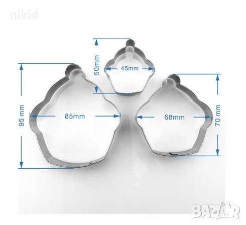 3 размера кексчета мъфини метални форми резци за тесто фондан бисквитки украса декор → Обява 28209081
