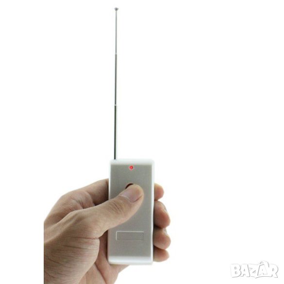 Mоже да варира в интервал 4 MHz . При поръчка посочете коя честота желаете . Много лек и лесен за използване. Има един бутон,превключвател за вкл/изкл,светещ в червено индикатор и антена . Блокира всички видове авто аларми , както и автоматични бариери , гаражни врати , дистанционни паник бутони и всички други устройства , работещи на тези честоти . Радиуса на действие е около 50 метра , като заглушава радио канала и прави дистанционното неуправляемо . По този начин алармата не може да бъде включена или изключена . Ако автомобила се отвори с ключ , алармата ще се активира , а няма да може да бъде спряна . Заглушителя работи с една батерия 9V волта , която трябва да купите допълнително . Начин на работа : извадете антената , преместете превключвателя на позиция ON и задръжте бутона - индикатора свети в червено . Ефекта на заглушаване е моментален .