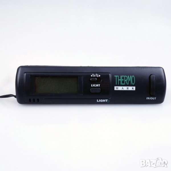 Дигитален термометър с индикатор за външна и вътрешна температура, които се сменят с натискане на бутон. Показва температурата в °C и °F