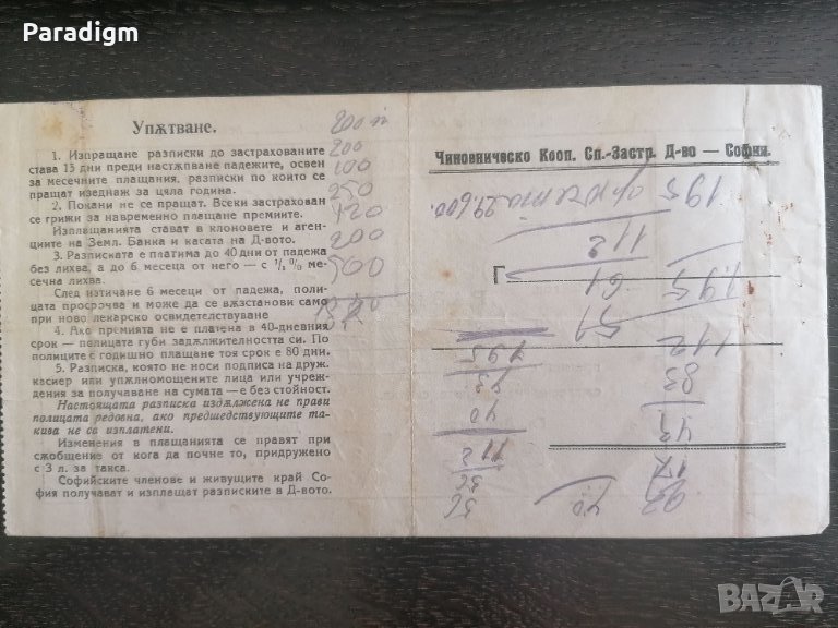 Разписка за премия от царския период - 1925г.
