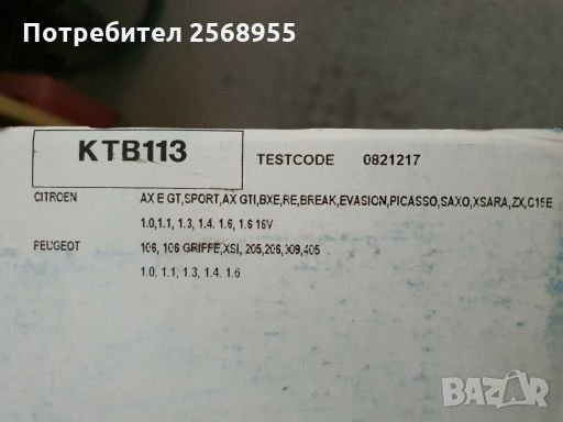 DAYCO KTB113 К-Т АНГРЕНАЖЕН РЕМЪК 1.4, 1.6 CITROEN AX /BX/Saxo/Xsara/ PEUGEOT 106/205/206/306/405 → Обява 28226323