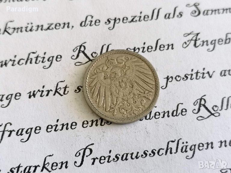 Монета - 5 пфенига от 1908г.; серия D