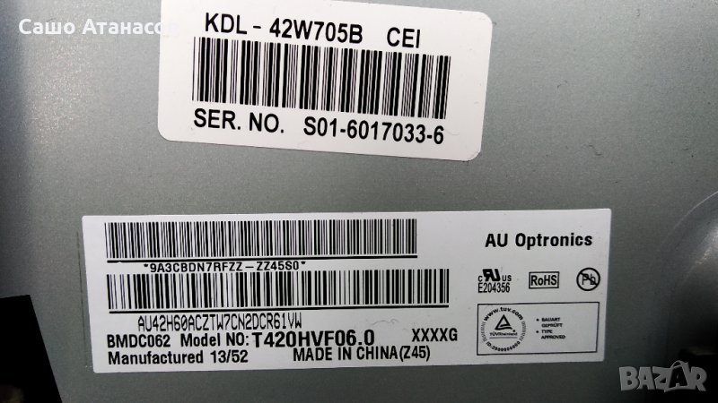 SONY KDL-42W705B с дефектна матрица , 1-889-202-21 , 1-889-203-12 , T420HVN06.2 , 14STM4250AD-6S01