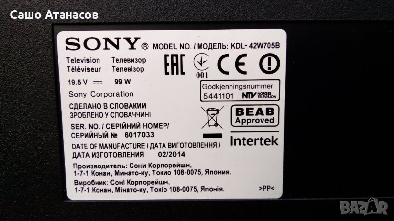 Модули от телевизор SONY KDL-42W705B с дефектирала матрица (панел T420HVF06.0 )