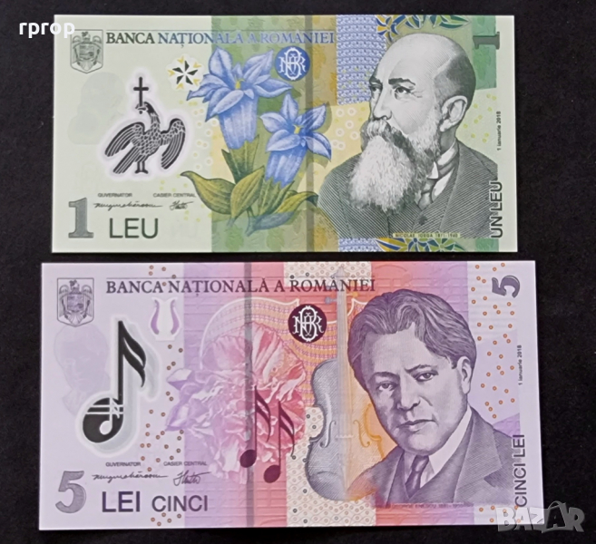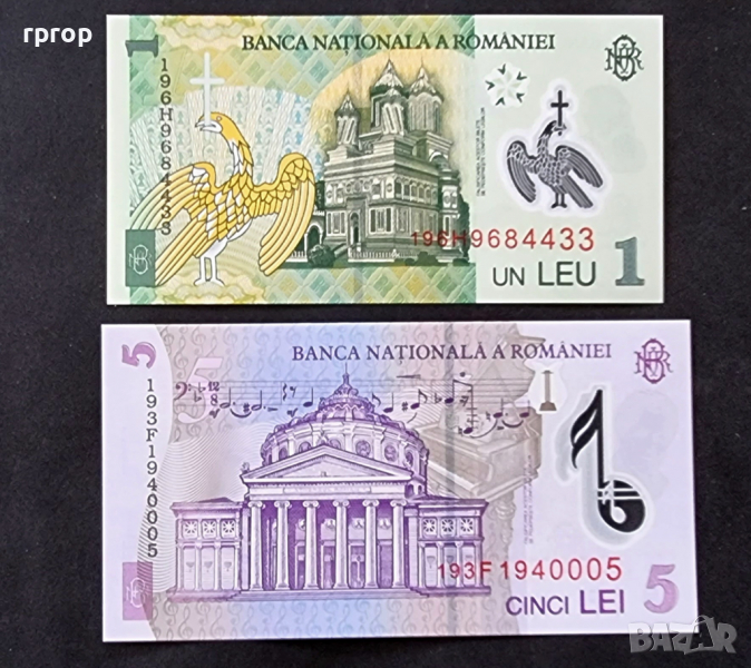 Банкноти. Румъния , 1 и 5 леи. UNC → Обява 28231059