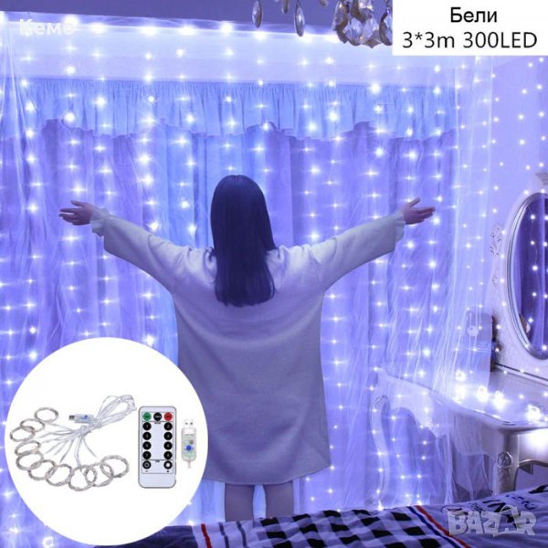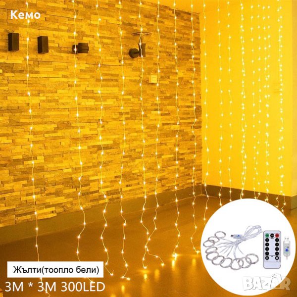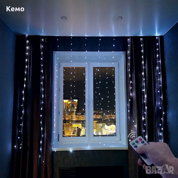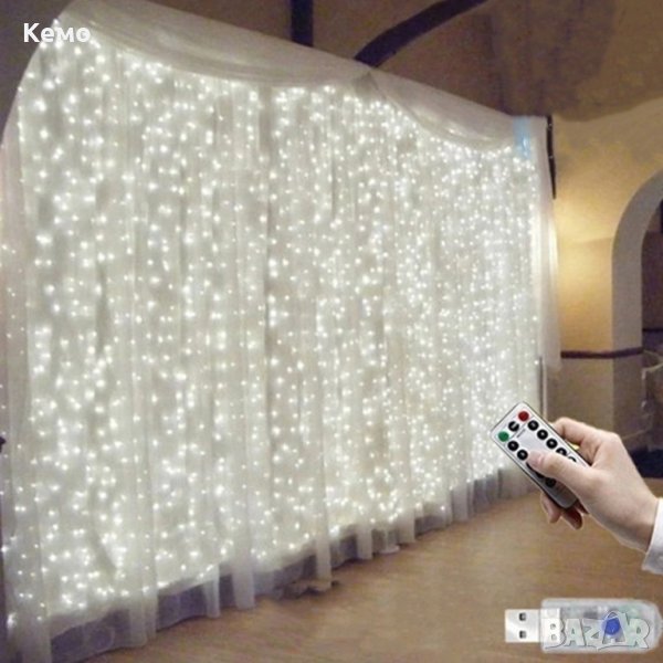 Подходящи за празнична украса, тип завеса за външно и вътрешно полагане с 8 различни режима на работа и дистанционно управление.