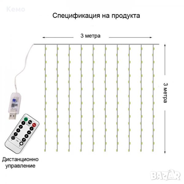 Лампички тип завеса USB захранване 3х3м 300 LED