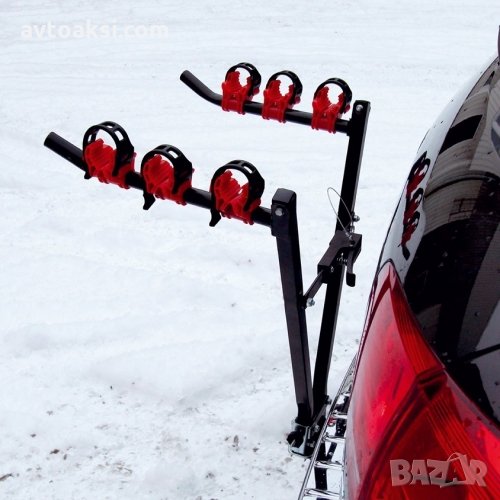 Багажник за велосипеди универсални за 1/2/3 колела Подходящо се закрепва към теглича на превозното средство Лесно се сглобява Не са необходими инструменти Сгъва се за лесно съхранение Задържа 1/2/3 велосипеда Лека конструкция Защитни гумени абсорбери.