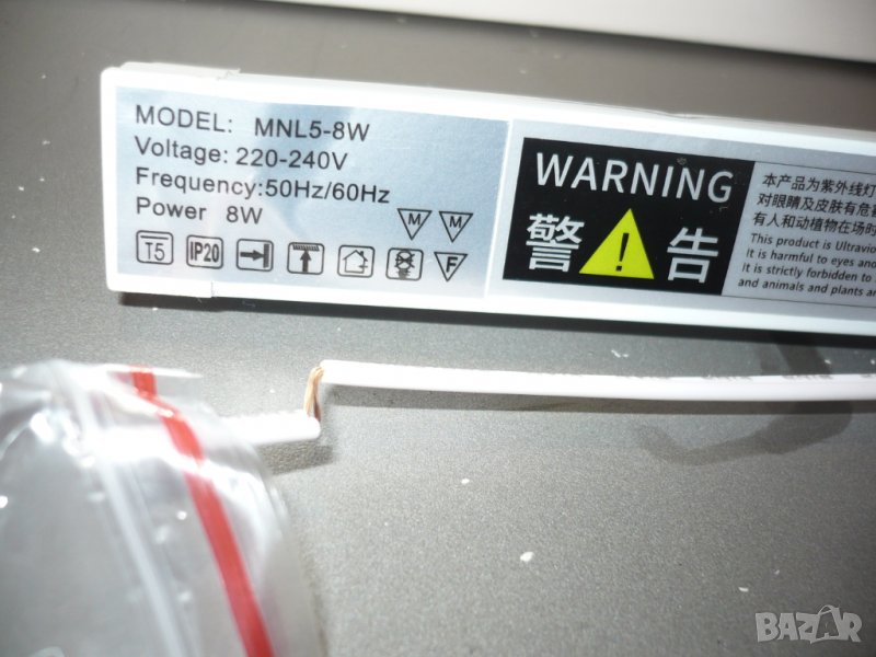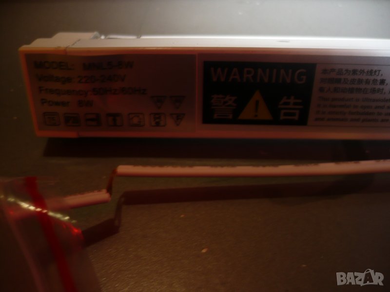 тръбна лампа с ултравиолетова светлина за дезинфекция на въздуха с тяло и 10см кабел за включване към нея
