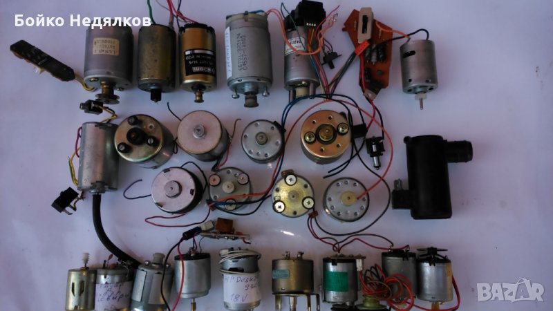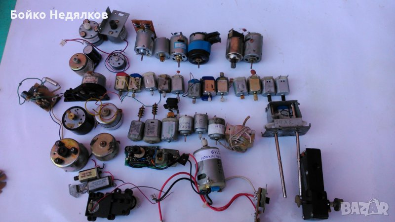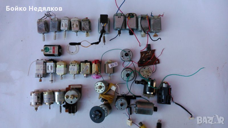 Миниатюрни колекторни моторчета от: магнетофони, касетофони, принтери, играчки, касови апарати, епилатори, фотоапарати, акумулаторна прахосмукачка, и др.