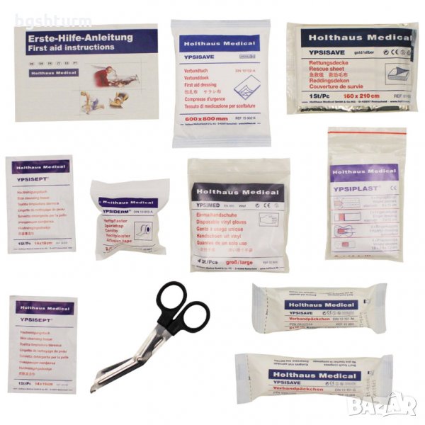Комплект за първа медицинска помощ , 27 елемента , HOLTHAUS, DIN 13164 , подходящ за мотоциклети съгласно DIN 13167