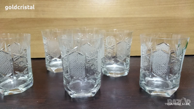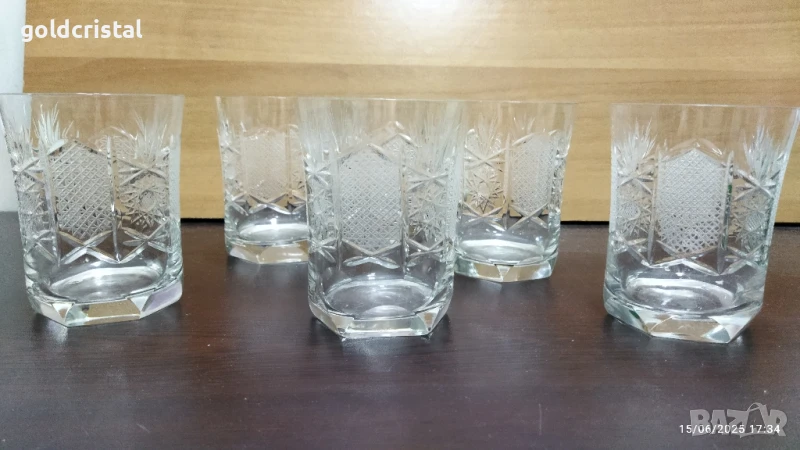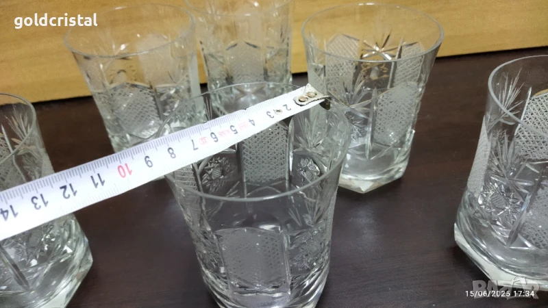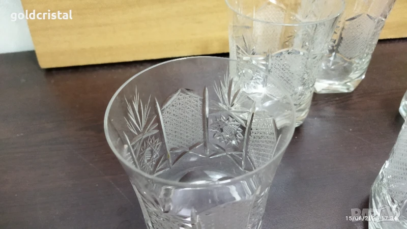 кристални чаши Зорница лукс уиски български кристал богата ръчна гравюра 6 броя без забележки сервиз комплект сет лот ретро арт декор винтидж колекция стари старинни антикварни предмети обзавеждане за дома и семейството подходящи за подарък за ценители и колекционери