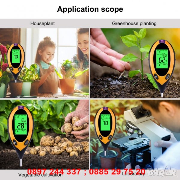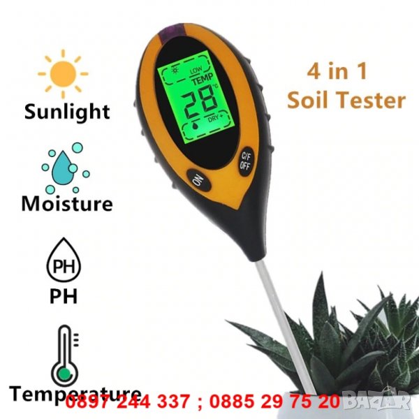 Сонда 4 в 1 - за измерване на земната повърхност: Температура, Влажност, pH, Интезитет на светлина.