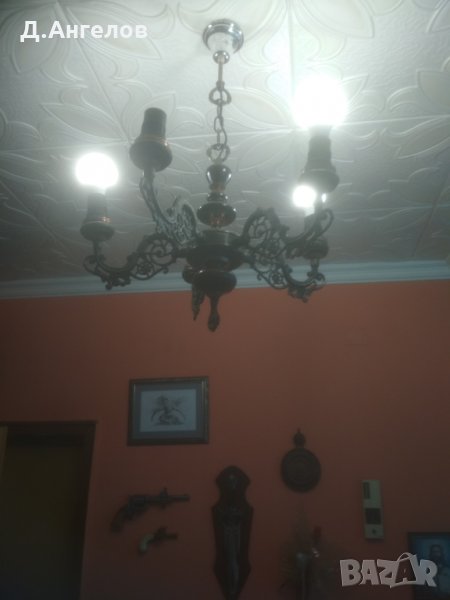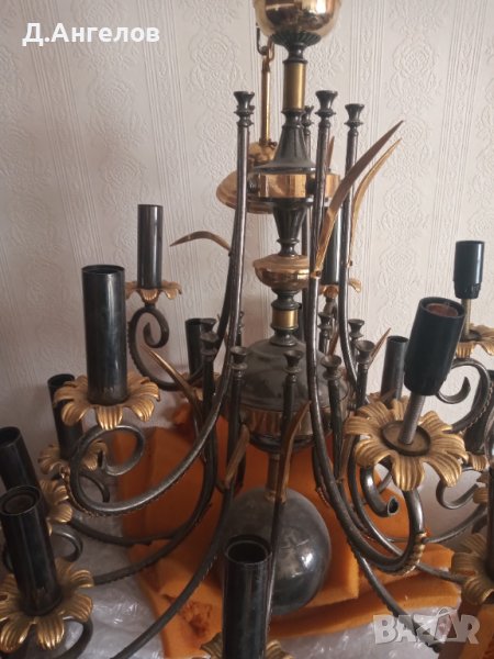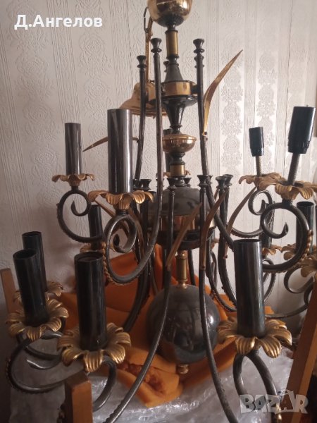 Продавам полилей в комбинация от месинг и дърво. С 5 лампи е. Цена 65 евро. Големия е с 15 лампи, диаметър 64см , дължина 90см . Цена 115 евро.
