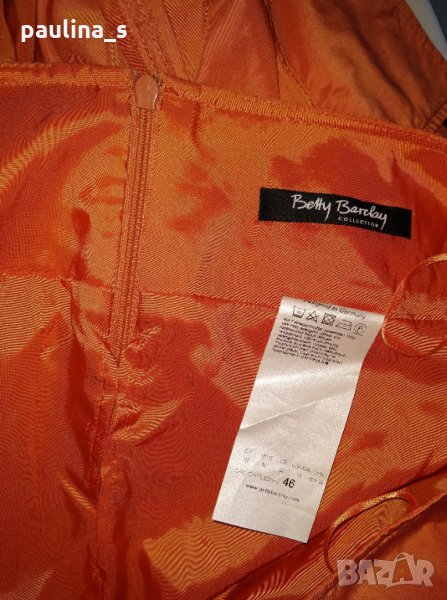 1. 2XL / 4XL - "Betty Barclay". Цената е крайна 124,99лв. Невероятен костюм на изумителната Бети Баркли в цвят Портокал, лична колекция. Моделът е много шикозен, материята е немачкаема, цветът е транслуцентен - мени се на светлината и има сатениращ ефект. Подходящ за събития, офис, за всеки случай. Обличано е веднъж, вече ми е голям. Цената е 1/2 от реалната, за на практика скъпа и луксозна вещ.