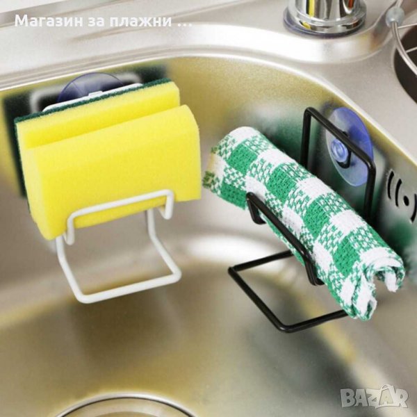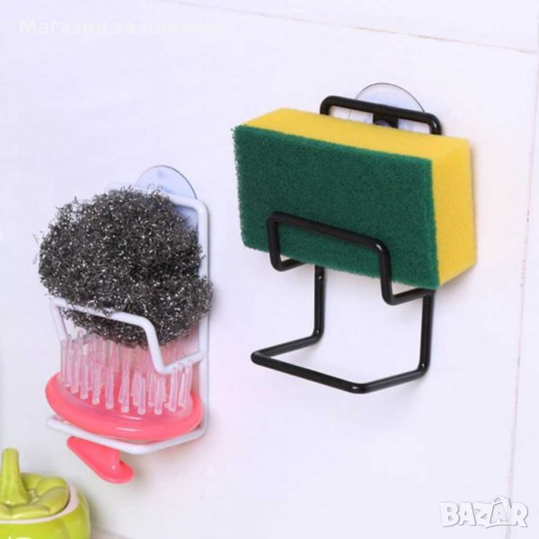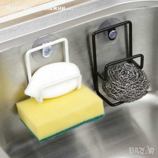 Органайзер за кухненска гъба и телче за съдове, която се захваща с вакуум вендуза.