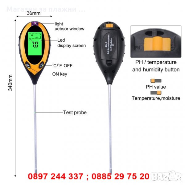 Сонда 4 в 1 - за измерване на земната повърхност: Температура, Влажност, pH, Интезитет на светлина.