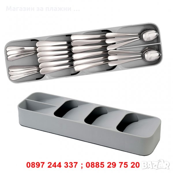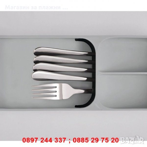 Идеалното решение за тези, които са къси на кухненското пространство за чекмедже, този компактен органайзер освобождава място за всички останали прибори и джаджи.
