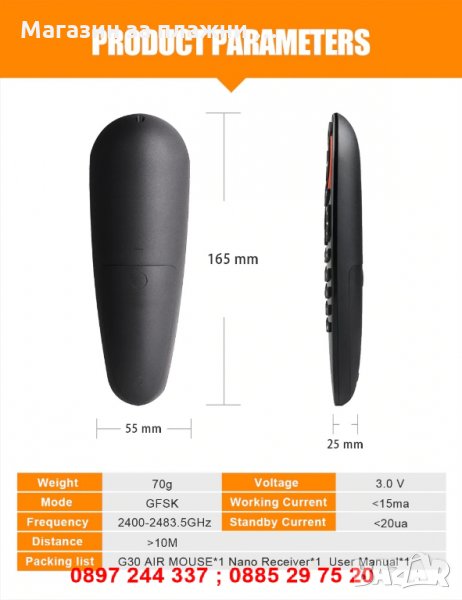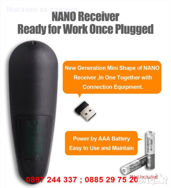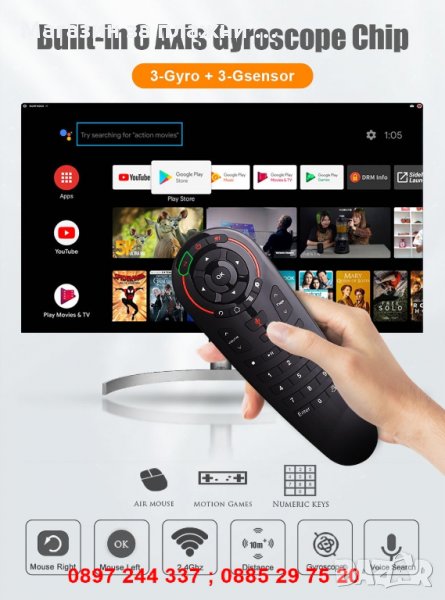 Вграден 6 осов жироскоп - можете да управлявате мишката чрез движение на ръката (някои модели Air Mouse нямат жироскоп и при тях мишката се управлява само от копчетата);