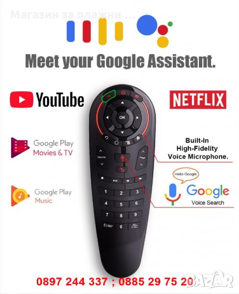 Може да изпълнява гласови команди чрез приложението Google Assistant;