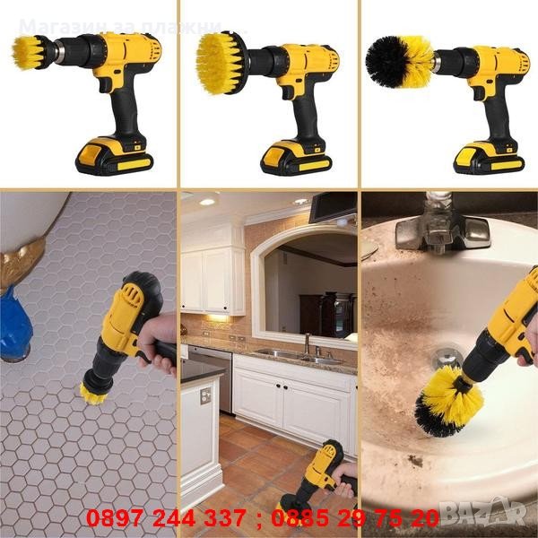 С четките за винтоверт ще можете да почиствате всякакви повърхности - фугите, килима, гумите, захабени съдове и др. Можете лесно да достигнете и до най-труднодостъпните места!