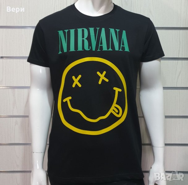 Страхотна нова мъжка тениска в черен цвят с трансферен печат на музикалната група NIRVANA. Тениската е изработена в България под марката PRINTEX от висококачествен 100% пениран памук на 170 гр./м², който запазва цялостта на материята и наситеността на цветовете на черното трико дълго време. С удобна кройка, тениската е свободна и позволява максимален комфорт при носене. Професионално изработен висококачествен трансферен печат, устойчив на пране с години. Тениската може да се пере при температура до 40 градуса. Спокойно можем да гарантираме за качеството на изработката и ярките цветове на дизайна.