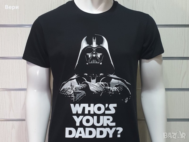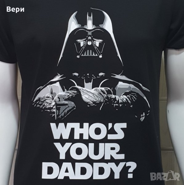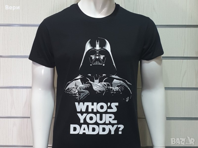 За ценителите на всичко качествено представяме нашата нова страхотна мъжка тениска в черен цвят с дигитален печат героя на Междузвездни войни, Дарт Вейдър - WHO'S YOUR DADDY. Тениската е изработена в България под марката PRINTEX от висококачествен 100% пениран памук на 170 гр./м², който запазва цялостта на материята и наситеността на цветовете. С удобна кройка, тениската е свободна и позволява максимален комфорт при носене. Професионално изработен висококачествен дигитален печат, устойчив на пране с години. Тениската може да се пере при температура до 40 градуса. Спокойно можем да гарантираме за качеството на изработката и ярките цветове на дизайна.