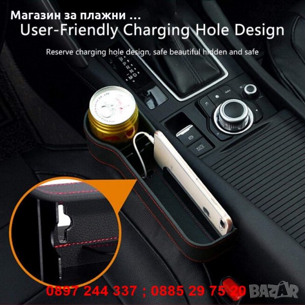 Семплата поставка-органайзер пасва на всеки интериор и се монтира лесно и удобно между шофьорската или пасажерската предна седалка и централната конзола на автомобила.
