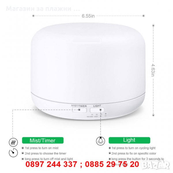 Дифузер/овлажнител (код 2560) с капацитет 300 или 500 мл. - 1бр.