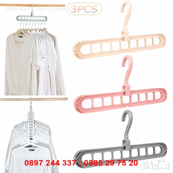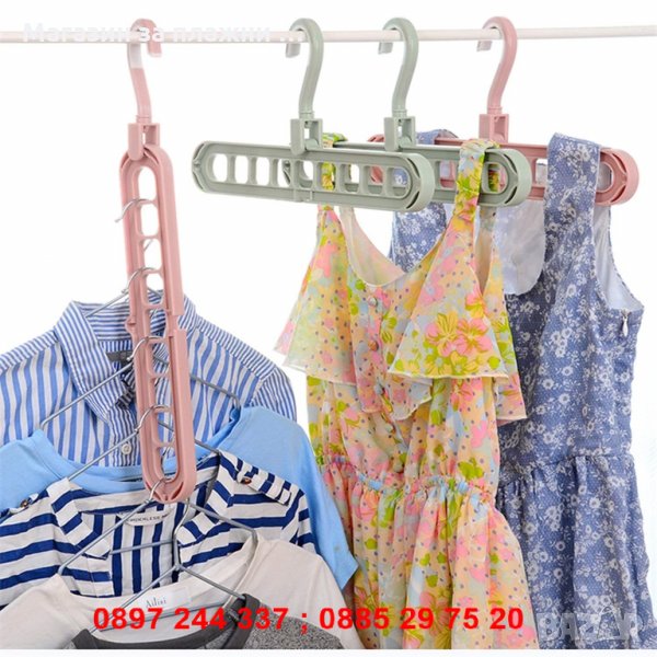 Мултифункционлана закачалка за дрехи, която може да се постави хоризонтално и вертикално. Закачалката изпълнява функция на органакзер за други закачалки в гардероба, благодарение на дупките в основата си. Спестява място и всичко е подредено и винаги под ръка. Чудесен органайзер за гардероб. Може да се използва и като сушилник за дрехи.